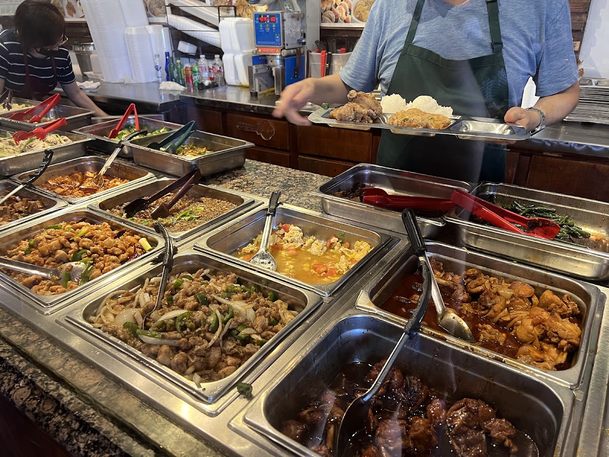 excellent traditional Chinese food in a cafeteria style format. good selection of 12 to 15 dishes served in plates of 2, 3 or 4 entrees per plate with rice. free soup with plate. the taste really is home style cooking at family friendly prices. recommended!